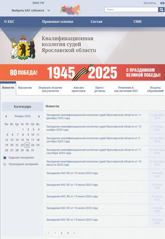 | 22 января 2026 года состоялось заседание квалификационной коллегии судей Ярославской области | версия для печати |